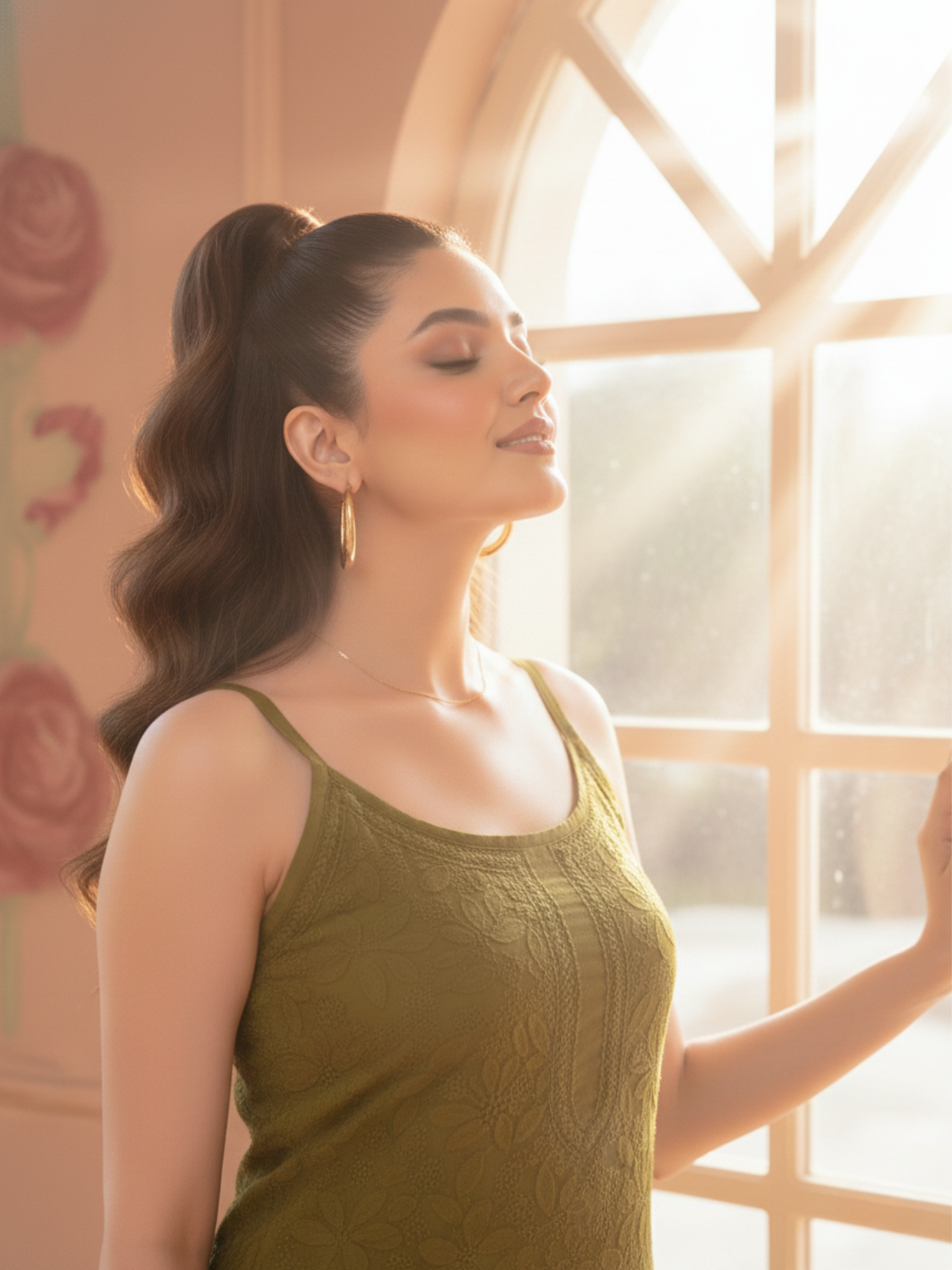 Designed for the woman who appreciates subtle luxury, Dreamy Olive blends natural tones with refined detailing, making it a versatile statement for both daytime sophistication and elevated evenings.