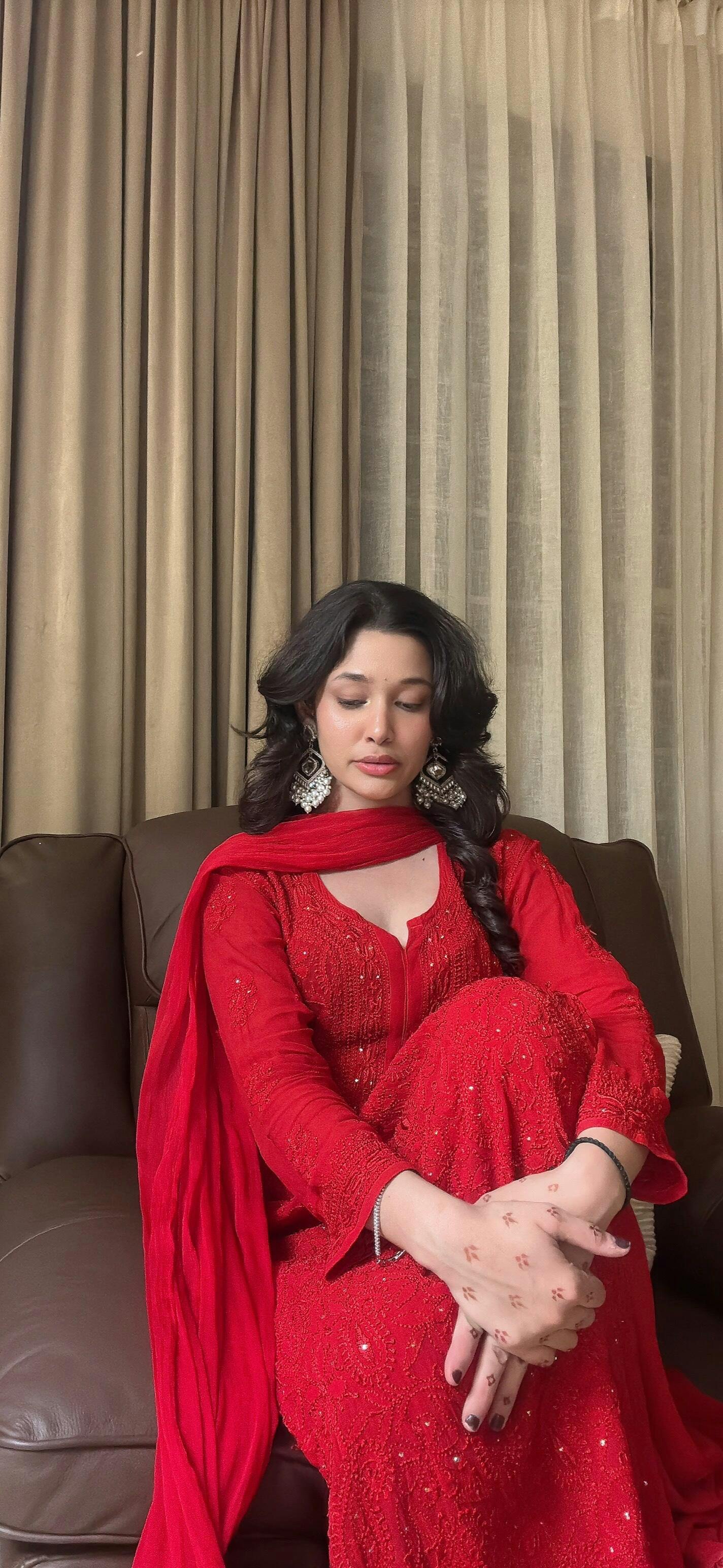 Each Forbidden Red Chikankari Kurta Set is lovingly handcrafted, with every motif reflecting centuries of expertise. Slight variations in embroidery and hue enhance the uniqueness of each piece, making it a distinctive, wearable work of art.