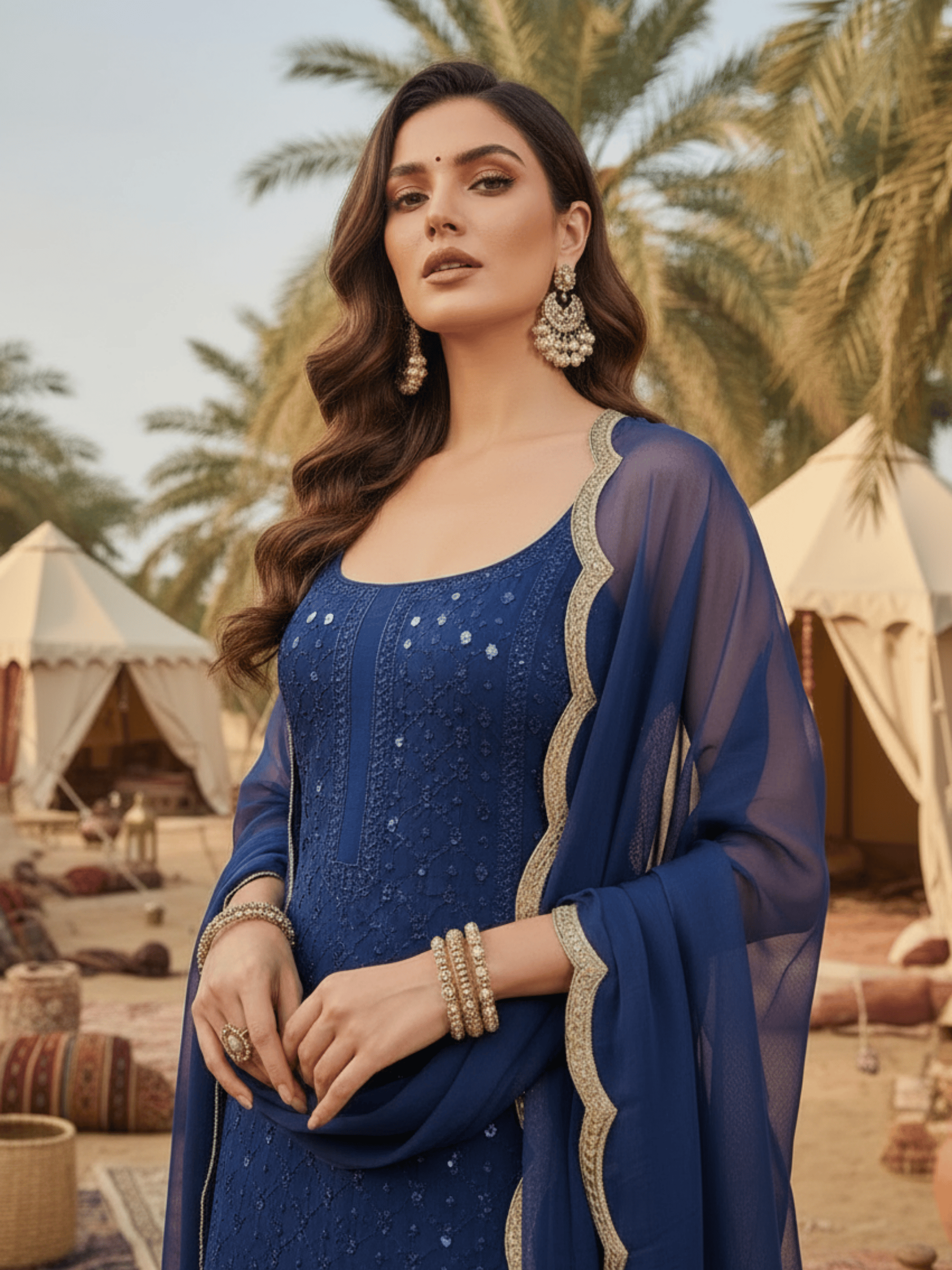 The Velvet Sapphire Set is made for soirées, weddings, festive nights, and intimate celebrations where elegance speaks louder than embellishment. Pair it with statement earrings, gold heels, and a bold lip for a look that exudes power and grace in equal measure.